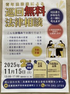 この他にも様々な相談に対応することが出来るお得な相談会です。また来年も兵庫県のどこかで開催しますのでその際は是非ご相談に来てください。